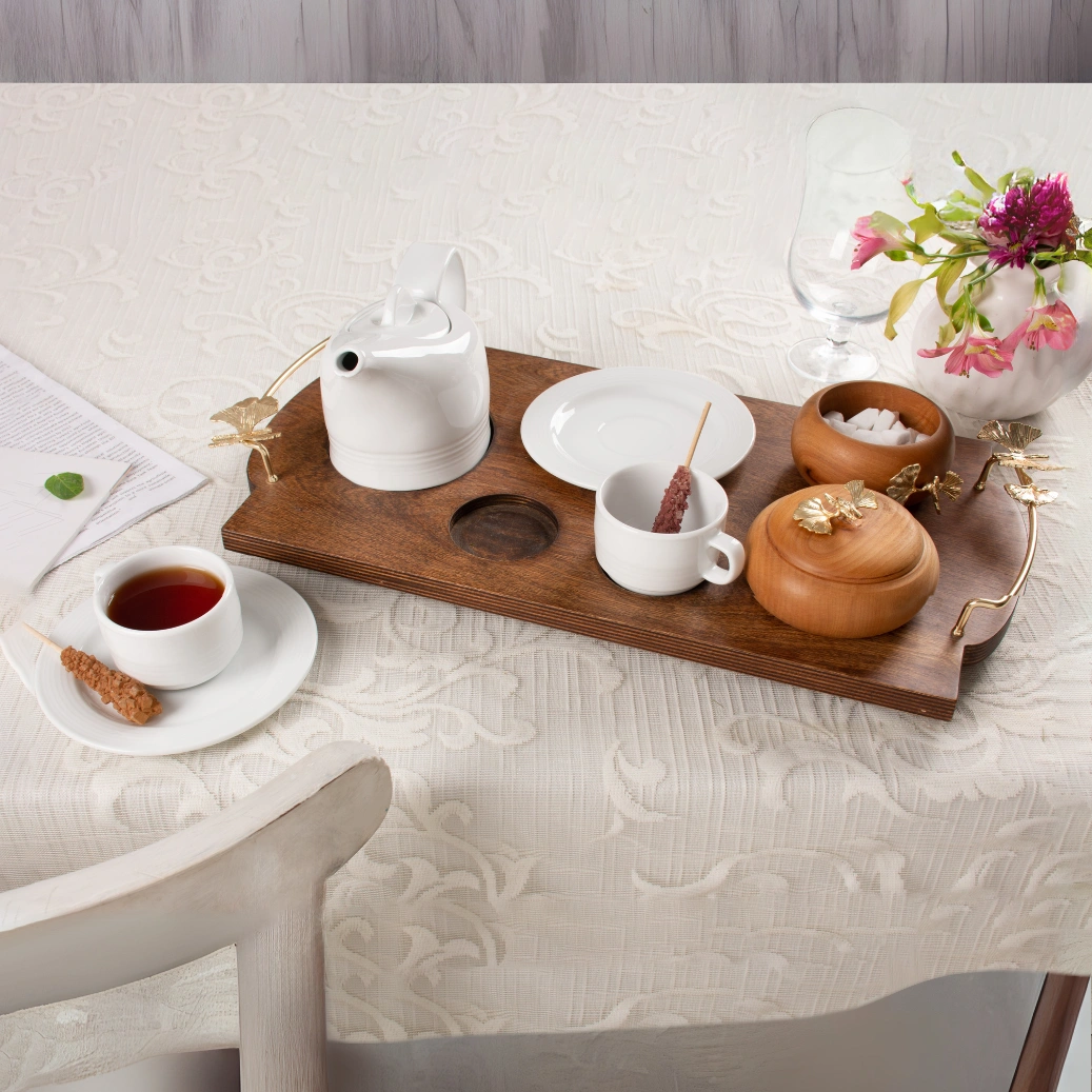 سرویس چای خوری چینی 2 نفره با سینی و قندان چوبی