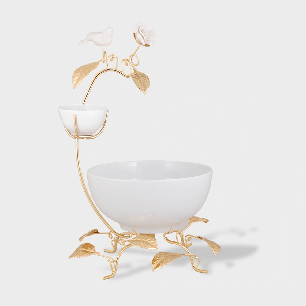 کاسه پذیرایی چینی ادج روی پایه فلزی گل و پرنده
