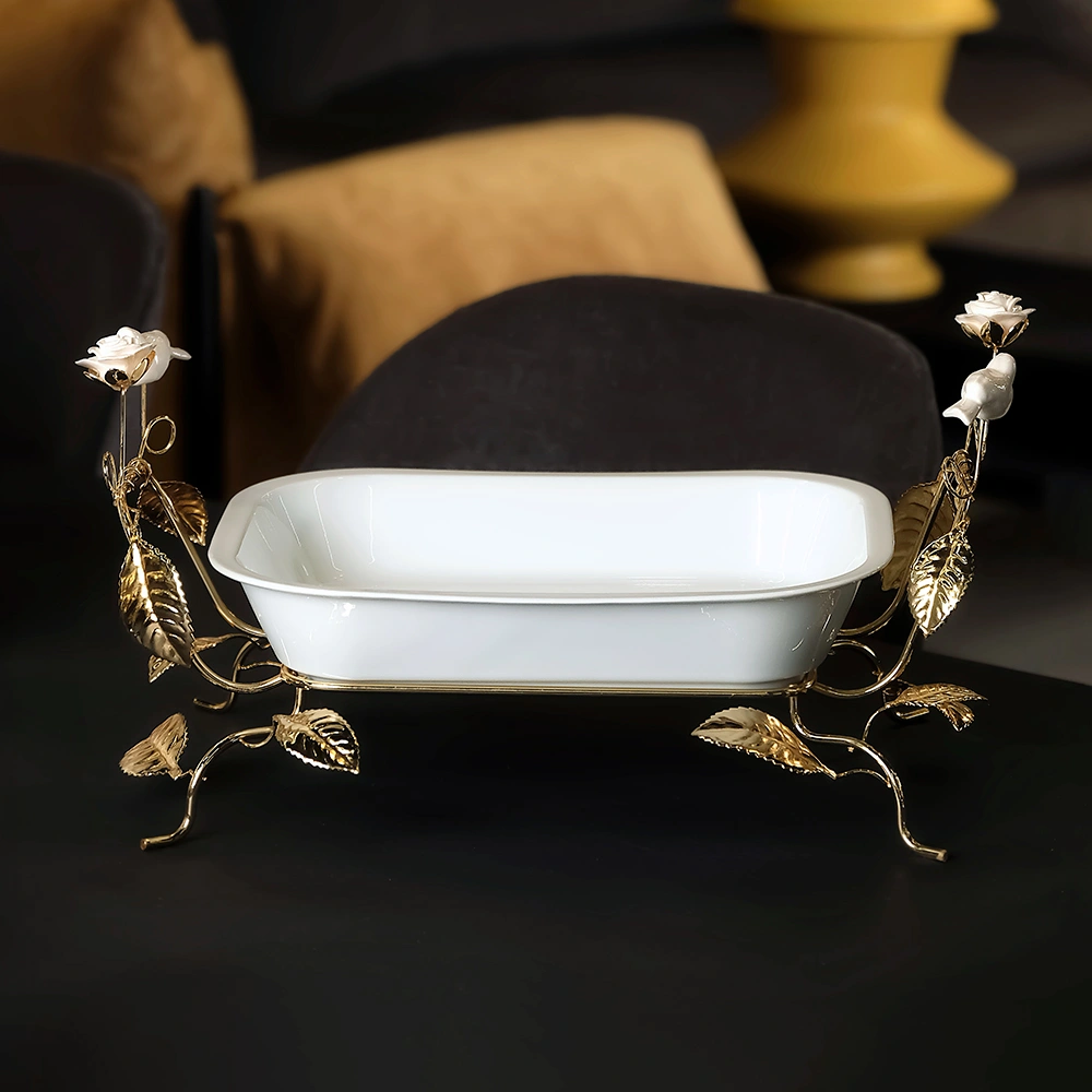 کاسه پذیرایی چینی پایه دار گل و پرنده