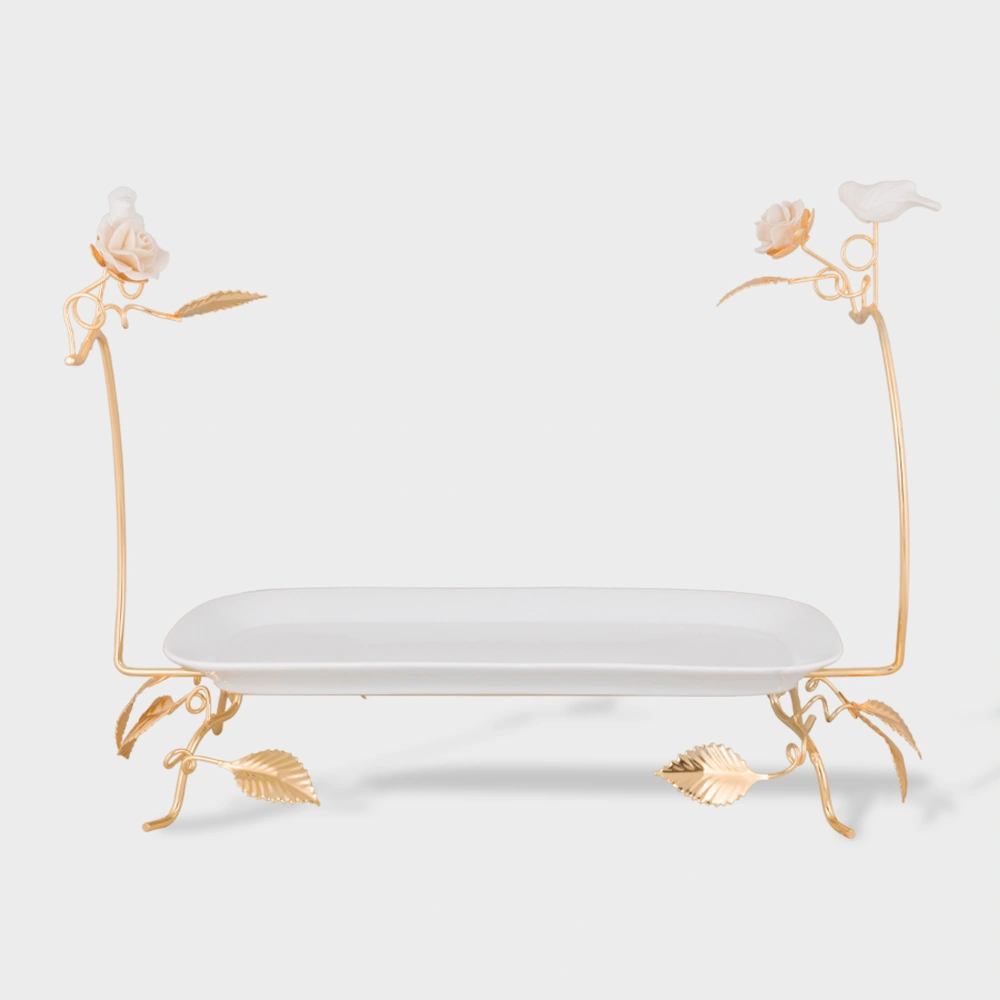 دیس پذیرایی چینی فلت پایه دار گل و پرنده