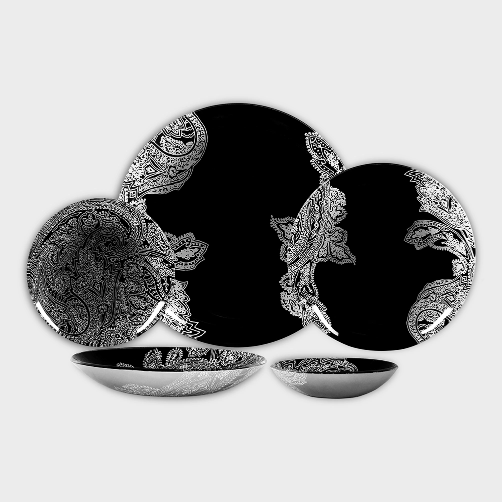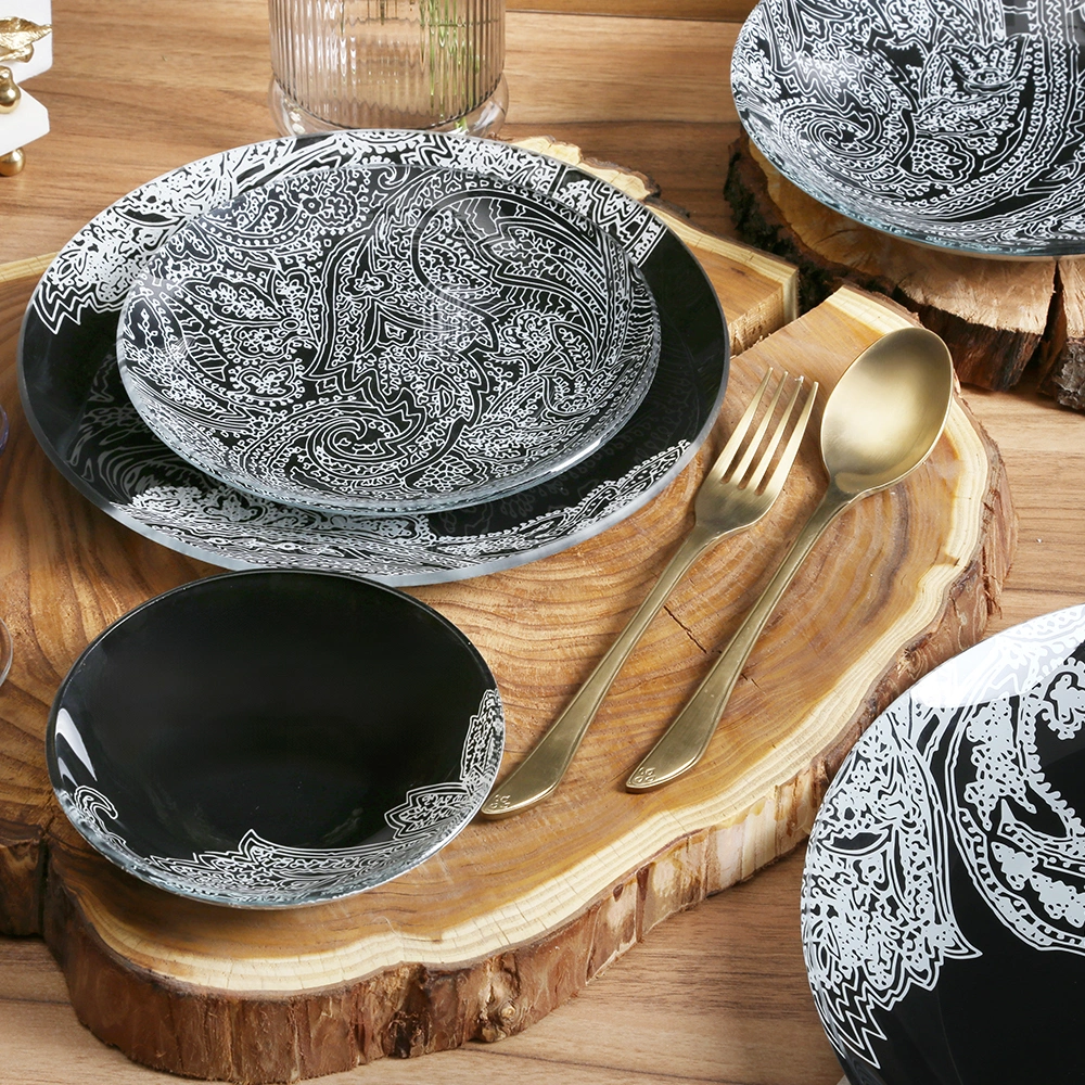 سرویس غذاخوری شیشه ای 6 نفره طرح نیارا مشکی