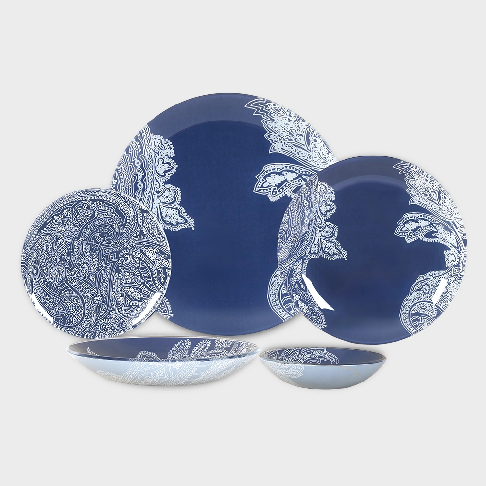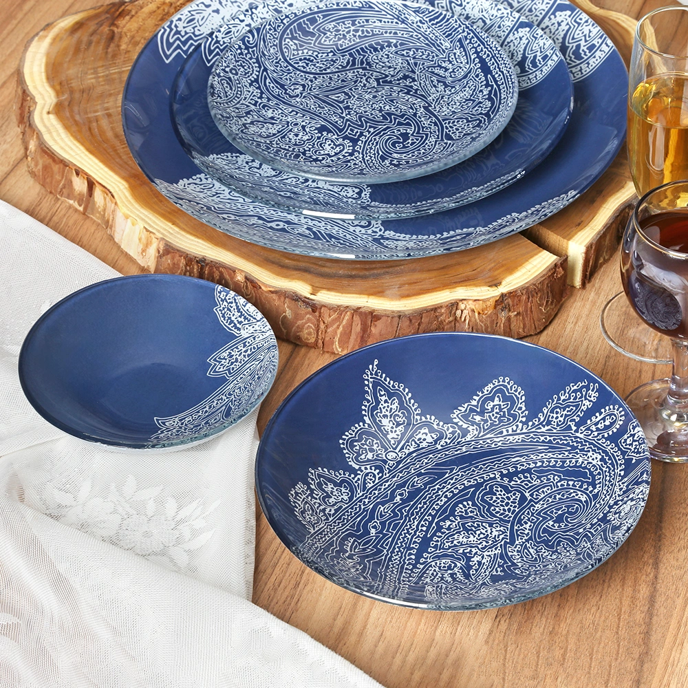 سرویس غذاخوری شیشه ای 6 نفره طرح نیارا سرمه ای