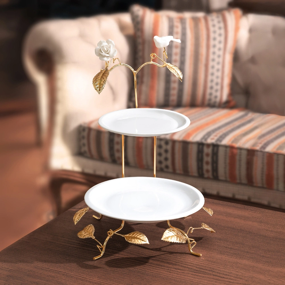 ظرف پذیرایی چینی 2 طبقه گرد روی پایه فلزی